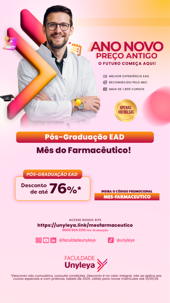 Em comemoração ao Dia do Farmacêutico, comemorado em 20 de janeiro, a faculdade UnyLeya está com desconto de até 76% para cursos de pós-graduação. Confira aqui até 31/01/2026. Código Promocional: MES-FARMACEUTICO