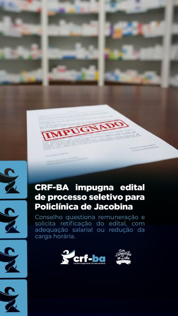 O CRF-BA requereu a retificação e republicação do edital, com a devida adequação salarial para R$ 5.934,42 (e adicionais). Caso não seja possível, foi solicitado que a carga horária seja reduzida para 20h semanais, garantindo condições mais justas e compatíveis com a valorização do profissional farmacêutico.