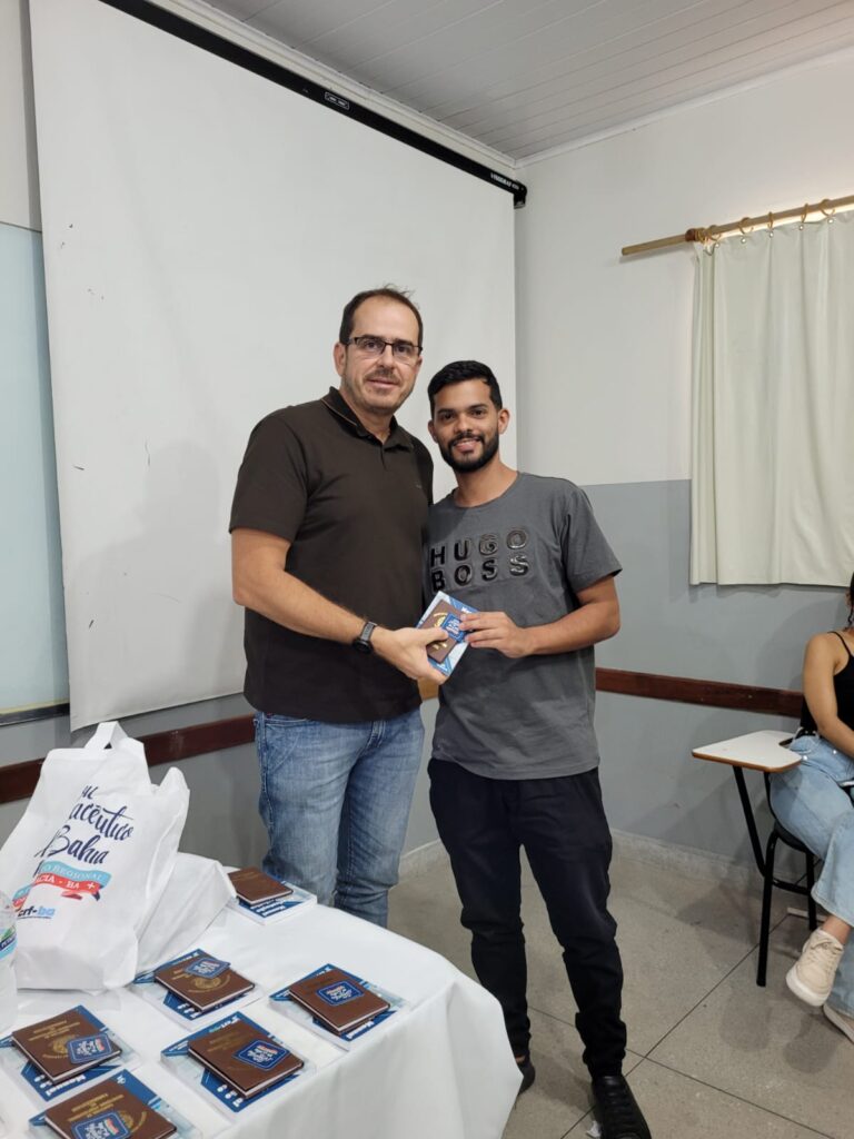 Na última sexta-feira (26), o CRF-BA realizou mais uma entrega de carteiras profissionais a novos farmacêuticos. A cerimônia, que ocorreu na Universidade Estadual do Sudoeste Baiano (UESB), contou com a participação do presidente do CRF-BA, Dr. Mário Martinelli e de Dr. Arivaldo Moraes, professor universitário e assessor da Diretoria do Conselho.