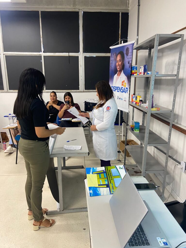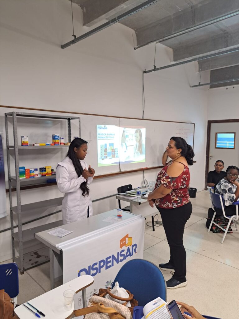 Com o conteúdo ministrado pelos professores Dr. Daniel Tenório da Silva e Dra. Darlene Glória Santos Alves, o encontro contou com a presença do assessor da diretoria do CRF-BA, Dr. Arivaldo Santana, e o apoio da Dra. Monique Aragão, farmacêutica responsável pela farmácia escola da UniFTC.