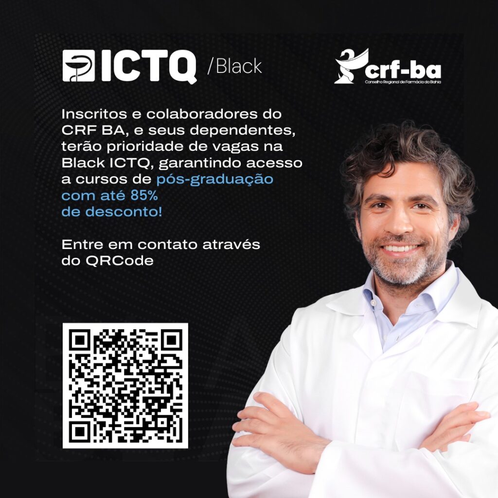 A ICTQ Black 2025 está prestes a começar — e promete ser a maior Black da história do ICTQ! Serão oferecidas pós-graduações com até 85% de desconto, além de vantagens e oportunidades exclusivas para quem deseja investir na carreira farmacêutica com qualidade e economia.