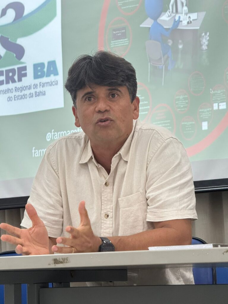 A palestra foi ministrada pelo Dr. Antônio Anderson Pinheiro, com a participação do Dr. Álan Brito, e contou com a presença do Presidente do CRF-BA, Dr. Mário Martinelli, e do Conselheiro Federal de Farmácia, Dr. Altamiro José dos Santos, que acompanharam e prestigiaram a iniciativa.